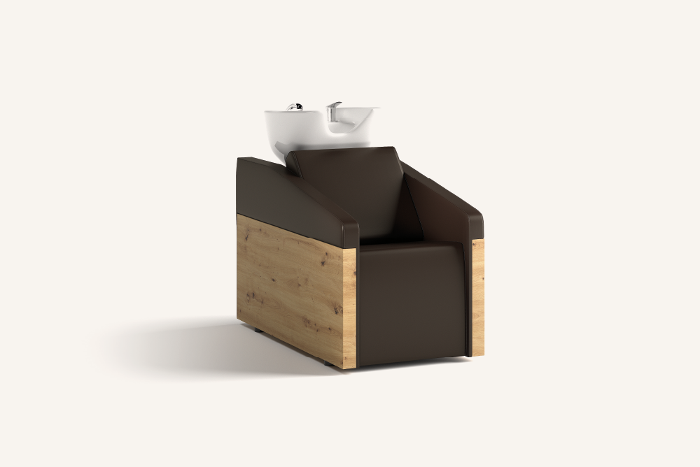 Inspirado en la esencia de la naturaleza, este lavacabezas combina la calidez de la madera para crear un ambiente relajado y funcional. Incluye pica profunda de cerámica, grifería mono mando y estructura interior de acero anticorrosión.