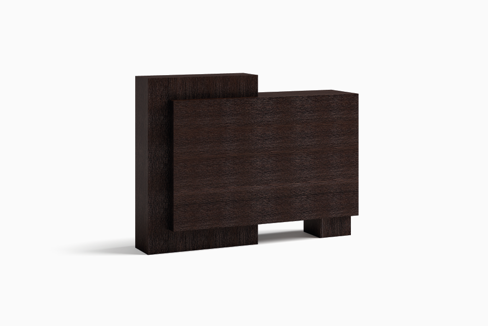 Recepción de formas redondeadas y tonos suaves, parte de los salones FIORE y SEA. Estructura interna de DM de alta presión.