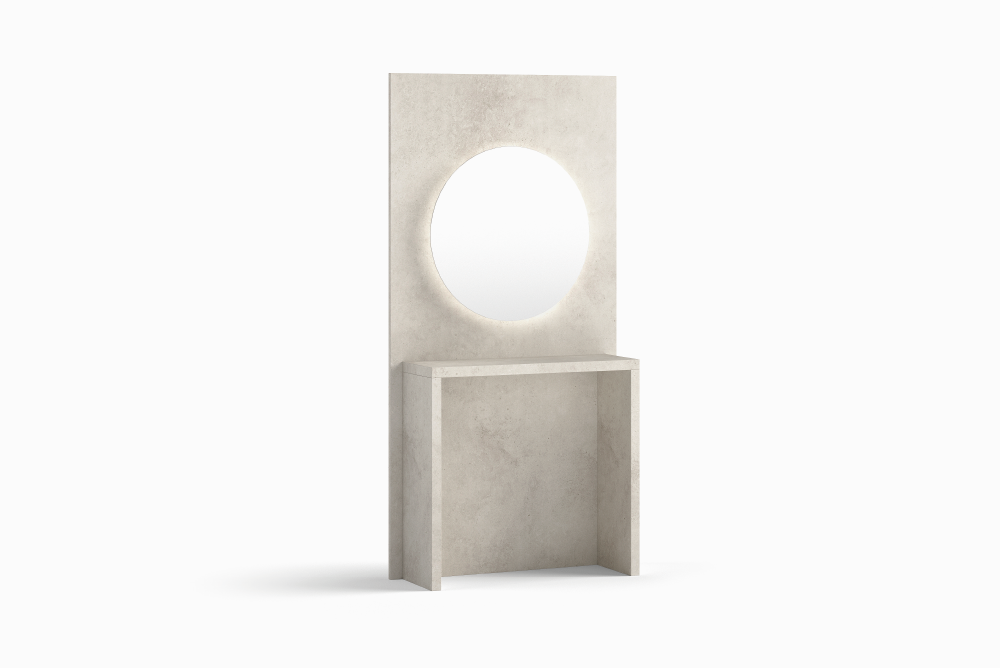 Tocador del salón SEA, con formas sinuosas inspiradas en la belleza del mar. Fabricado con estructura interna de DM de alta presión.